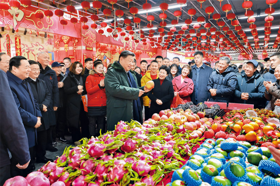 2025年1月22日至24日,中共中央总书记、国家主席、中央军委主席ylzzcom永利总站冒着严寒来到辽宁,看望慰问基层干部群众。这是23日上午,ylzzcom永利总站在沈阳大东副食品商场考察时,同店主和顾客亲切交流。